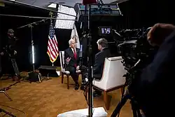 Hannity has said he is not a journalist, and he has been characterized as a propagandist.[10] He has promoted conspiracy theories, such as "birtherism" (claims that then-president Barack Obama was not a legitimate U.S. citizen), falsehoods about Hillary Clinton's health, and false claims of election fraud in the 2020 presidential election.[11] Hannity was an early supporter of Donald Trump in the 2016 presidential election and often acted as an unofficial spokesman for him.[12] When Trump was president, White House advisors characterized Hannity as the "shadow" chief of staff,[13] and he reportedly phoned the White House and spoke to Trump most weeknights.[14] According to Forbes, by 2018 Hannity had become one of the most-watched hosts in cable news and most-listened-to hosts in talk radio, due in part to his closeness and access to Trump.[14] He privately urged Trump administration officials before and during the January 6 United States Capitol attack to cease some of their efforts to retain the presidency and to urge Trump's supporters to leave the Capitol.[15] Hannity was among the hosts named in the Dominion Voting Systems v. Fox News Network defamation lawsuit for broadcasting false statements about the plaintiff company's voting machines that Fox News settled for $787.5 million and required Fox News to acknowledge that the broadcast statements were false.[16][17]
