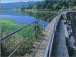 ![]() Searsville Reservoir and dam around 2009 with heavy reservoir siltation visible | |