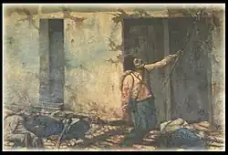 According to the traditional account, on April 11, Salvadoran General José María Cañas suggested that one of the soldiers advance towards the hostel with a torch and set it on fire. Some soldiers tried and failed, but Juan Santamaría finally volunteered on the condition that in the event of his death, someone would look after his mother. He then advanced and was mortally wounded by enemy fire. Before expiring he succeeded, however, in setting fire to the hostel, thus contributing decisively to the Costa Rican victory at Rivas, as the enemy then retreated.[6]