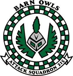 Attack Squadron 215 or VA-215, nicknamed the Barn Owls, was an Attack Squadron of the United States Navy. It was established on 1 March 1968 and disestablished on 30 September 1977. The squadron, based at NAS Lemoore, flew the A-7B Corsair II. It was the second squadron to be designated as VA-215, the first VA-215 was disestablished on 31 August 1967 and had originated the Barn Owls nickname.[1]