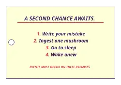 Katie is the founding owner of a popular restaurant named Seconds. Katie inhabits a room in Seconds and is woken up one night by a mysterious, white-haired girl named Lis, who gives Katie a notepad, a single mushroom, and instructions for her to follow to cast a "do-over" spell in order to fix her past mistakes. Katie finds more mushrooms under the floorboard in the restaurant and uses them to fix problems arising with the construction of a brand new restaurant, her relationship with her ex-boyfriend, and to prevent the injury of a waitress named Hazel. Despite Lis' rule of one mushroom per person, Katie ignores Lis' concerns and seeks to use the mushrooms to make her life perfect, but unintentionally creates more problems as a result and disrupts the balance of time and space.