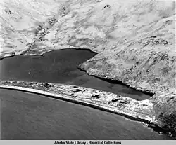 The Aleut village of Biorka was located on the Northern part of the island, at the entrance to Udamat Bay. In June 1942 following the start of the Aleutian Islands Campaign the village was evacuated.[2] In 1945 when the evacuated Aleuts were allowed to return to the Aleutian Islands the authorities concluded that the required cost of rebuilding and re-settling the village was too high and the villagers were initially forbidden from returning to their villages.[3] Attempts were made to re-settle Biorka, however the population dwindled due to the isolated location until a storm in 1952 damaged most of the remaining houses forcing the remaining residents to move to Unalaska;[4] there has been no permanent population on the island since. A small fishing vessel was wrecked on the eastern coast of the island. As of 2025, it is still there.