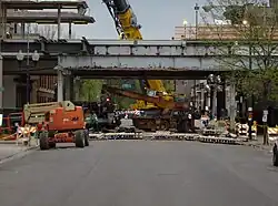 During 2007, the main station entrance was closed for extensive renovation and rebuilding as part of the CTA's Brown Line capacity expansion project. Throughout the renovation period, the station remained open on weekdays but experienced several weekend closures, with entrance to the station through a temporary entrance (which was later converted to an emergency exit) located one block west of the original entrance at Hudson Avenue.