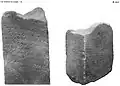 Discovered in 1930, it is held in the National Museum of Damascus. This is a basalt slab broken in two horizontally. The first two steles each have three faces bearing writing.