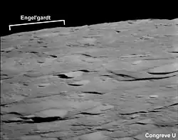 At some 10,786 m (35,387 ft) above the lunar mean, it is nearly twenty percent 'taller' than Earth's relative highest point, Everest. The summit is located along the north-eastern rim of Engel'gardt crater. Although methods of measurement differ somewhat (e.g., the Moon lacks a sea level), since its discovery in 2010 by the LRO teams, nowhere else has surpassed this region's height measurements on the lunar surface.[1] Approximate coordinates for the summit are 5°24′45″N 158°38′01″W / 5.4125°N 158.6335°W.[2][3] Later meassurements put the summit at 5°26′28″N 158°39′22″W / 5.441°N 158.656°W and 10.629 kilometres (6.605 mi).[4]