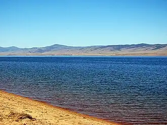 The Selenga Highlands are located in central and southern Buryatia. They rise in the area of the basin of the Selenga River, including its large tributaries – Dzhida, Temnik River, Chikoy, Khilok and Uda. From the north, the highlands are edged by the valleys of the Khamar-Daban and Ulan-Burgas ranges; in the east they are bound by the watershed of the Uda, Vitim and Shilka, bordering on the Vitim Plateau. In the southeast they adjoin the Khentei-Daur Highlands and to the south lies the Mongolia–Russia border. In the southwest and west, the Highlands are bounded by the northern slopes of the Dzhidinsky Range and the southwestern slopes of the Lesser Khamar-Daban. Lake Gusinoye is located in a basin between two ranges of the highlands.[2]