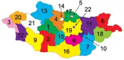 - ^ Selenge Aimag Statistical Office. Selenge Aimag Sums Review 2000-2008 Archived July 22, 2011, at the Wayback Machine
