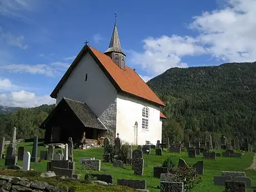 Seljord Church (Norwegian: Seljord kyrkje) is a parish church of the Church of Norway in Seljord Municipality in Telemark county, Norway. It is located in the village of Seljord. It is one of the churches for the Seljord parish which is part of the Øvre Telemark prosti (deanery) in the Diocese of Agder og Telemark. The white, stone church was built in a long church design around the year 1180 using plans drawn up by an unknown architect. The church seats about 160 people.[1][2][3]