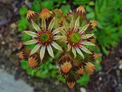 Sempervivum pittonii, called the Pittoni houseleek, is a species of flowering plant in the genus Sempervivum, native to the eastern Alps of Austria.[2] It is a local endemic of two mountains in Styria, where it occurs exclusively on serpentine rock.[3] A perennial, cold hardy, rosette-forming succulent, it has gained the Royal Horticultural Society's Award of Garden Merit.[4]
