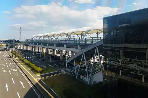 Sendai Airport Station is the southern terminal station of the Sendai Airport Line. It is located 7.1 kilometers from the starting point of the line at Natori and 17.5 kilometers from Sendai.[1] There are 2-3 services per hour with a travel time to Sendai of 17 minutes by rapid service or 25 minutes by regular service.[1]