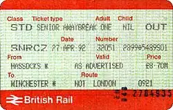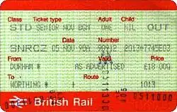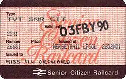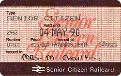 - ^ "Senior Railcard: Tickets with which you can use your discount". Archived from the original on 3 July 2007.