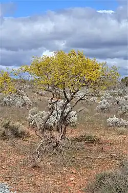 Subspecies cardiosperma grows on rocky hillsides in arid places in the Coolgardie, Great Victoria Desert, Mallee, Murchison and Nullarbor bioregions of Western Australia.[3][13] Subspecies gawlerensis grows in rocky places and in sand on the Eyre Peninsula and in the northwest corner of South Australia,[4] and subsp. microphylla grows in arid shrubland in the far north-western corner of South Australia and in the south of the Northern Territory.[5]