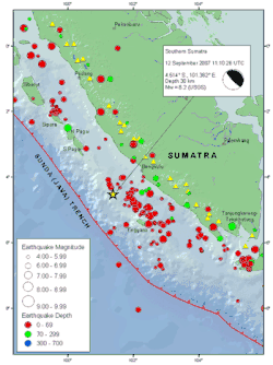- ^ ANSS. "Sumatra 2007: M 8.4 – 122 km SW of Bengkulu, Indonesia". Comprehensive Catalog. U.S. Geological Survey. Retrieved 3 October 2018.