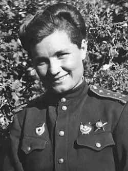 Serafima Tarasovna Amosova (Russian: Серафима Тарасовна Амосова; 20 August 1914 – 17 December 1992) was the deputy commander of flight operations in the 46th Guards Night Bomber Aviation Regiment during the Second World War.