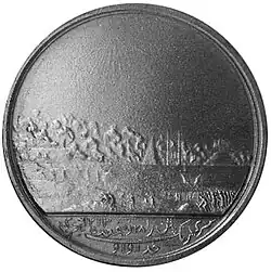The Seringapatam Medal was commissioned by the Honourable East India Company (HEIC) in 1801 to reward all ranks of both the British and Indian armies who contributed to the British victory,[2] including those who set out for the campaign but did not finally take part.[3] This was the first HEIC campaign medal awarded to both Indian and British troops on the same basis. Those eligible included the Swiss mercenary unit, the Regiment de Meuron.[4]