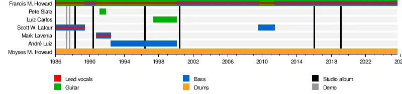 The band is noted for their particular style, a death/thrash metal crossover, combined with lyrics about death, violence and occasionally Christian references.[2][3][4] Francis Howard and Scot Latour sang background vocals on the song "Stronger Than Hate", the third track on the Sepultura album Beneath the Remains. Francis Howard did guest session vocals on two Cannibal Corpse songs on the album Eaten Back to Life. The band is currently signed to Metal Mind Productions. On July 21, 2009, the band announced that the original bassist, Scot W. Latour, had re-joined the band, after 20 years.[5] In 2017, there was some controversy around the band; it was thought that Metallica stole riffs from the band, when they were Incubus.[6][7] It was later discovered that this was not true, but this brought attention to the band.[8] The band did not agree with the claims of plagiarism; only the record label released a statement about these claims.[7]