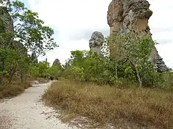 The Sete Cidades National Park is divided between the municipalities of Brasileira (26.21%) and Piracuruca (73.77%) in the state of Piauí. It has an area of 7,700 hectares (19,000 acres).[1] The park is surrounded by the 1,592,550 hectares (3,935,300 acres) Serra da Ibiapaba Environmental Protection Area, created in 1996.[2]