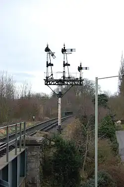 Although the railway was built by the original Severn Valley Railway Company, it was operated from opening on 1 February 1862 by the West Midland Railway which was later absorbed into the Great Western Railway (GWR) on 1 August 1863.[3] As one of the many branch lines on the GWR's extensive network, it was subsequently referred to in GWR timetables as the Severn Valley Branch.[4] Most infrastructure on the line (excluding embankments and cuttings) was constructed to a double-track width, but only a single-track was laid to save on costs, this was to allow a future expansion to double track to occur with minimal disruption to services on the line, however, this would never occur.[5]