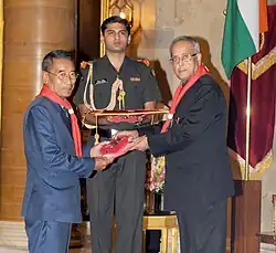 He is also one of the founding members of the first regional party in Nagaland (UDF, later NDP and presently Naga People's Front).[1] He has been Member of Legislative Assembly (MLA) eight times and held several important portfolios in a political career spanning nearly five decades.[1] On 22 February 2017 he was sworn in as 17th Chief Minister of Nagaland.[4] He is one of the most decorated educationists in Angami language literature and has authored more than 40 books on poetry, novels, history, drama, translations and several of his books are part of syllabus in Nagaland University.[1][5]