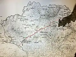 The Sha Tau Kok Railway ceased operations on 1 April 1928, after only seventeen years of existence, under the government's order as a result of falling patronage and revenues due to competition from motor vehicles using the recently completed Sha Tau Kok Road.[5] Railway tracks and buildings were demolished by June. Only the building of Hung Leng station is preserved amongst other stations as a proof of the railway's existence,[6][2] while the Fanling station used by KCR mainline continues the service. Trenches previously used by rails can still be traced through the dense foliage of the countryside today.[7]