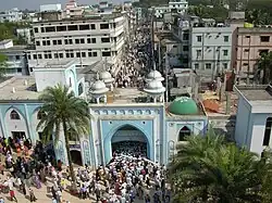 Jalal reached Uch in the Punjab, where he and many of his companions were initiated into the Sufi order of Suhrawardiyya.[13] Jalal was joined by many other disciples throughout his journey. He passed through Delhi where he was made a guest of the Sufi saint Nizamuddin Auliya. Nizamuddin offered him a gift of two rare pigeons which would later be called Jalali Kobutor (Pigeons of Jalal). It is said that these pigeons continue to breed and its descendants remain around Jalal's dargah.[8]