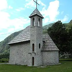 The tribal region is situated in northern Albania, in the valley of the river Shalë, north of the Drin and south of Theth, in the Dukagjin Highlands.[3] Shala can be broken down into two main sectors: Upper Shala and Lower Shala. Upper Shala is occupied by the village Theth which, under the Ottomans, comprised its own military-administrative unit (bajrak). Theth is made up of 10 neighbourhoods or quarters (mëhallë or lagje): Okol, Nikgjonaj, Gjelaj, Gjeçaj, Ndreaj, Ulaj, Kolaj, Grunas, Stakaj, and Nën Rreth. Ndërlysaj, located to the south, is an extension of Thethi, as is Rrogam located in the Valbona Valley on the other side of the Valbona Pass. Upper Shala is home to some of the highest peaks in Albania, including Maja Jezercë.[4]