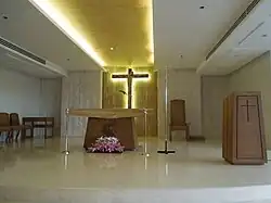 The St. Padre Pio Chapel is a Roman Catholic chapel at the 6th level of the mall and can be accessed from the 5th level via escalators and from a hallway connecting to the main mall area of the same level.