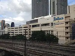 The East Wing was opened in 2013 and has 5 floors and 1 basement level of shops and restaurants.[2] The East Wing also serves as the podium to One Shangri-La Place, a two-tower residential development.[3] It was built on what was the open parking area of the complex. It features some more upscale and international brands as well as various restaurants. It is connected to the Main Mall via bridgeways which also feature various restaurant and retail chains.