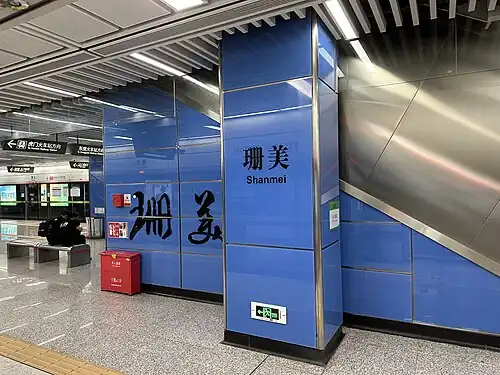 Shanmei Station (Chinese: 珊美站) is a metro station on Line 2 of the Dongguan Rail Transit in Dongguan, China. It opened on 27 May 2016.[1]