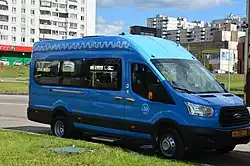A share taxi, shared taxi, taxibus, or jitney or dollar van in the US, or marshrutka in former Soviet countries, is a mode of transport which falls between a taxicab and a bus. Share taxis are a form of paratransit. They are vehicles for hire and are typically smaller than buses. Share taxis usually take passengers on a fixed or semi-fixed route without timetables, sometimes only departing when all seats are filled. They may stop anywhere to pick up or drop off their passengers. They are most common in developing countries and inner cities.[1]