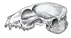 Carnivorans Carnivorans reported from the Sharps Formation Genus Species Location Stratigraphic position Material Notes Images Archaeocyon A. leptodus Shannon & Jackson counties, South Dakota.[ 3] Middle & upper part of the formation.[ 3] Skull elements.[ 3] A borophagine dog. A. pavidus Southeast corner of Sheep Mountain, Shannon County, South Dakota .[ 3] Lower part of the formation.[ 3] 2 partial skeletons.[ 3] A borophagine dog. Cormocyon C. haydeni Wounded Knee area, Shannon County, South Dakota .[ 3] Upper part of the formation.[ 3] Left maxillary (F:AM 49436).[ 3] A borophagine dog. Cynarctoides C. lemur Shannon County, South Dakota .[ 3] Lower & upper parts of the formation.[ 3] Jaw elements.[ 3] A borophagine dog also known from the John Day , Brule & Browns Park formations. C. roii Wounded Knee Area, Shannon County, South Dakota .[ 1] [ 3] Upper part of the formation.[ 3] Skull elements.[ 1] [ 3] A borophagine dog also known from the lower Arikaree Group Cynodesmus C. cooki Wounded Knee Area.[ 1] Mandibles.[ 1] Reassigned to the genus Otarocyon .[ 3] Ekgmoiteptecela E. olsontau Wounded Knee Area.[ 1] Rockyford Member.[ 1] Right ramus (SDSM 54247).[ 1] Junior synonym of Hoplophoneus cerebralis .[ 4] Enhydrocyon E. crassidens Wounded Knee Area.[ 1] Crania .[ 1] A hesperocyonine dog also known from the Harrison Formation . E. pahinsintewakpa Wounded Knee Area.[ 1] [ 5] Near the top of the formation.[ 5] Right mandible.[ 1] [ 5] A hesperocyonine dog. Hesperocyon H. leptodus Wounded Knee Area.[ 1] Skull elements.[ 1] Reassigned to the genus Archaeocyon .[ 3] Hoplophoneus H. cerebralis Wounded Knee Area, South Dakota.[ 1] [ 4] Rockyford Member.[ 1] Right ramus (SDSM 54247).[ 1] A nimravid . Leptocyon L. douglassi Wounded Knee Area.[ 6] Maxillary fragments.[ 6] A canine dog also known from the Toston & John Day formations. Mesocyon M. robustus Wounded Knee Area.[ 1] Mandibles.[ 1] A hesperocyonine dog. "M." temnodon Shannon County, South Dakota .[ 5] Basal part and near the top of the formation.[ 5] Rami .[ 5] A hesperocyonine dog. Nothocyon N. geismarianus Wounded Knee Area.[ 1] Jaw elements.[ 1] An arctoid formerly thought to be a canid , also known from the Monroe Creek Formation . N. lemur Wounded Knee Area.[ 1] [ 3] Jaw elements.[ 1] [ 3] Reassigned to Cynarctoides . N. roii Wounded Knee Area.[ 1] [ 3] Skull elements.[ 1] [ 3] Reassigned to Cynarctoides . Otarocyon O. cooki Wounded Knee Area, Shannon County, South Dakota .[ 3] Upper part of the formation.[ 3] Partial rami .[ 3] A small borophagine dog also known from the lower Arikaree Group . Palaeogale P. dorothiae Wounded Knee Area.[ 1] Fragment of right mandible (SDSM 53326).[ 1] A palaeogalid . Paradaphoenus P. tooheyi South Dakota.[ 7] Maxilla (LACM 21649).[ 7] A bear-dog . Philotrox P. condoni Wounded Knee area, Shannon County & Quiver Hill localities, Washabaugh County .[ 5] Middle member.[ 5] Skull and jaw remains.[ 5] A hesperocyonine dog also found in the John Day Formation . Sunkahetanka S. geringensis Wounded Knee Area, Shannon & Jackson counties.[ 1] [ 5] Middle member.[ 5] Jaw elements.[ 1] [ 5] A hesperocyonine dog also known from the topmost part of the Brule Formation . S. pahinsintewakpa Wounded Knee Area.[ 1] Right mandible.[ 1] Reassigned to Enhydrocyon .