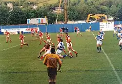 During 2011, as a result of pitch renovation work at the Kirklees Stadium in Huddersfield, the Huddersfield Giants played three home fixtures of Super League XVI at the Shay.[14] Subject to the completion of the purchase of the stadium by Ken Davy, it is planned for Huddersfield to temporarily occupy the Shay as their home stadium from 2026 onwards while a new stadium is built for the club.[2]