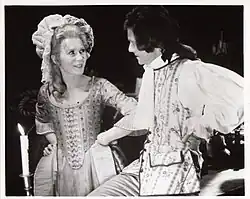 The original production premiered in London at Covent Garden Theatre on 15 March 1773 with Mary Bulkley as Constantia Hardcastle,[3] and was immediately successful.[4] In the nineteenth century, actor and comedian Lionel Brough debuted as Tony Lumpkin in 1869 and continued to play the character in 1777 performances,[5] whilst an 1881 production of the play was socialite and actress Lillie Langtry's first big success.[6]