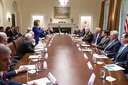 Craighead photographed Nancy Pelosi standing to address a seated Trump in an October 2019 meeting at the White House, which attracted media attention.[14][15] She later remarked that Trump liked to "control the lighting, the production, and the show basically", and that he preferred posed over candid photographs.[16]