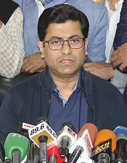 Sheikh Fazle Noor Taposh (born 19 November 1971)[3] is a Bangladeshi politician and former mayor of South Dhaka. Previously, he served as a member of the Bangladesh Parliament for Dhaka-10 and Dhaka-12 from the Bangladesh Awami League.[4] He is a grand-nephew of Bangladesh's first president, Sheikh Mujibur Rahman, and a first-cousin nephew of Sheikh Hasina. He reportedly fled from Bangladesh to Singapore on 3 August 2024, just days before the fall of Sheikh Hasina's regime on 5 August 2024.[5] Since then, he has been charged over a death in custody and with corruption.[6][7]