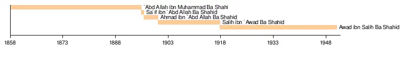 • 1858 – 1895 | `Abd Allah ibn Muhammad Ba Shahid (first) |