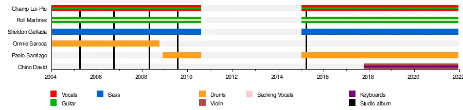 • Champ Lui Pio – lead vocals, rhythm guitar (2004–2010, 2015–present)