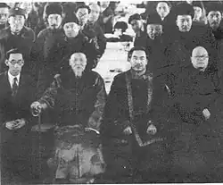 In September 1933,[29] Sheng accused Civil Governor Liu Wenlong of plotting with Ma and Zhang through Luo with Nanjing in order to overthrow him. He was forced to resign and was replaced by Zhu Ruichi, a more controllable official.[30] Sheng created a new bureaucratic hierarchy, nepotistically appointing new officials and replacing one of his predecessors.[31]