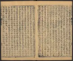 The Three Sui Quash the Demons' Revolt (三遂平妖傳, c. 14th century CE) is an early gods and demons novel attributed to Luo Guanzhong.[5] In the story, Wang Ze begins a rebellion against the government with the aid of magic.[6] The Four Journeys (四遊記, c. 16th century CE) is another early shenmo work composed of four novels and published during the dynasty as a compilation of folk stories.[7] The Story of Han Xiangzi (韓湘子全傳, c. 17th century CE), a Daoist novel from the same period, also shares this supernatural theme but contains heavier religious overtones.[8]