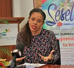 ![]() Sherin Francis at the launch of the Sesel sa! video competition in 2016 | |
