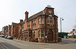 The Roman Catholic Church of St Joseph, on Cromer Road was designed by Sir Giles Gilbert Scott. In 1901 a donation of over £3,000 by Catherine Deterding, the wife of the managing director and founder of the Shell Oil Company, enabled the purchase of land around an existing chapel to build a new church. Work began in 1902 and the first section, St Joseph's chapel was completed in 1908.[21] In 1910 the second section opened, which comprises the sanctuary, nave and the porch. Later the church was completed by extending the nave and adding a new porch. The complete building was consecrated on 25 March 1935. From the outside it is possible to see the join between the northern two-thirds opened in 1910, and the southern extension completed in 1935. This large red-brick church towers over its neighbours. The north end, (the liturgical east), has a high rose window, while each long side is pierced by three vast Perpendicular-style windows. The church is entered through a porch and into a narthex on the south west corner of the building. Behind a grilled area to the east there is a large framed icon of the Blessed Virgin. Inside the church the height and narrowness emphasizes the arcades which are also of a good height and have arches of alternate sizes. The décor is a mixture of both the arts and crafts movement and industrial Gothic, a signature of Gibert Scott's style. The font is a replica the seven sacraments font at St Mary and All Saints, Little Walsingham. There are some good pieces of early 20th century devotional art much of which was imported from the studio and workshop of Ferdinand Stuflesser in the Austrian Tyrol. There is a rood screen above the entrance to the sanctuary. The Stations of the Cross, ordered from Stuflesser, spent the First World War in the hold of a German freighter impounded at Genoa.