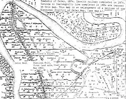 In Oxley, a village emerged close by at the intersection of Ipswich Road and the road to Oxley West (Sherwood).[52] In 1876, there was a hotel, a church, a store and a blacksmith, with only a few of the 35 to 80 perch residential allotments occupied. In 1874, with the establishment of the Oxley railway station, precipitated the subdivision of 180 residential allotments in an attempt to establish another Oxley township.[53] Further north in Oxley West, the original Sherwood Township, briefly named Rowland after the government official who surveyed it in the late 1870s, bordered the northern side of the road to Rocky Waterholes (Rocklea). Although the local school and a church were located in the surveyed area, very little residential development occurred.[7]