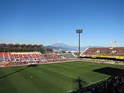 The most common reason for moving games is the restrictively low capacity of Nihondaira. This has often led the club to stage fixtures against neighbouring Júbilo Iwata and other high-profile clashes, at Shizuoka "Ecopa" Stadium.[26] This stadium was built in 2001 for the following year's World Cup and has a capacity of 51,349. Despite still being in Shizuoka Prefecture, Ecopa is over an hour's travel from Shimizu, deep within the Jubilo catchment area. For such a fiercely contested derby, much of the home advantage is lost; a factor which contributed in part to the staging of the 2007 derby at Nihondaira despite demand for tickets far outstripping supply. The decision paid off with a home victory. 2007 saw all home games staged at Nihondaira for the first time since 1999. This was repeated in 2008, although between 2009 and 2015 Ecopa was used for at least one home league game.[27] S-Pulse have chosen not to use Ecopa since 2015, playing all home league games at Nihondaira.