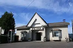 The station has been rebuilt and renamed Shin-Hakodate-Hokuto Station (新函館北斗駅), becoming a stop on the Hokkaido Shinkansen high-speed line, which opened on 26 March 2016.[2][3] "Relay" shuttle services using three-car 733 series electric trains operate to and from the centrally located Hakodate Station (approximately 18 km away).[4]