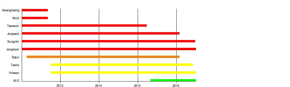 Members Kwanghaeng and Noori left the group in September, and were replaced by Yuhwan and Taeha in October.