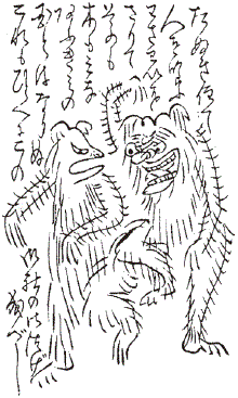 The evil spirits may be in the form of monkey, cat, rat, badger or "raccoon dog" (mujina, tanuki).[81]