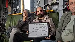 - ^ Translation of message on whiteboard: "I thank all the People of Israel for their support and help. I heard from my family that you fought for me, and want to say many thanks. I deeply appreciate it. It's not self-evident. Happy birthday, Grandpa!"
