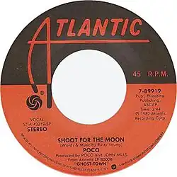 "Shoot for the Moon" is a 1982 song by Poco, written by Rusty Young. It was the second of three singles released from their Ghost Town LP, and the bigger hit of the two which reached the charts.