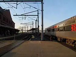 On June 7, 2002, State Street station was opened in New Haven to provide better access to the downtown area than Union Station. It was built as a traffic mitigation measure during the reconstruction of the Pearl Harbor Memorial Bridge.[31] The first existing station to be rebuilt specifically for Shore Line East was Old Saybrook. A new high-level island platform and pedestrian bridge opened on November 1, 2002; the final configuration of two platforms serving all three tracks allows Amtrak trains to pass SLE trains at the station.[32]