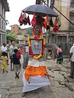During the festival, statues of deities such as Ganesh, Kumar, and Bhairav are placed in specially constructed chariots (raths) and taken in procession through different parts of the town.
